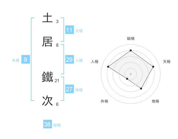 土居 鐵次さんを姓名の画数から五運を鑑定