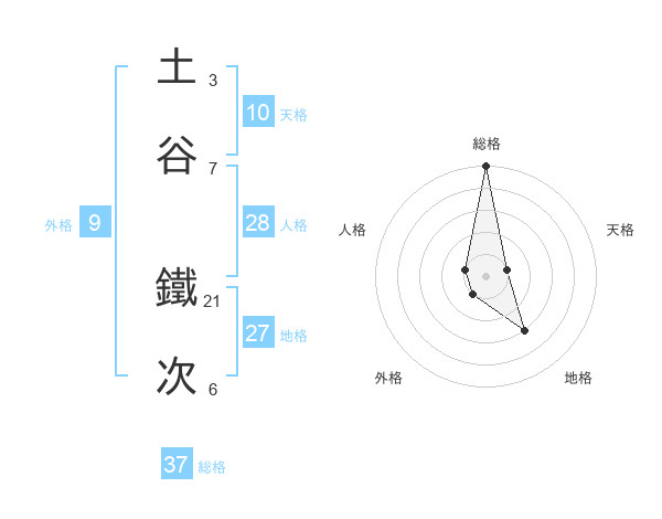 土谷 鐵次さんを姓名の画数から五運を鑑定