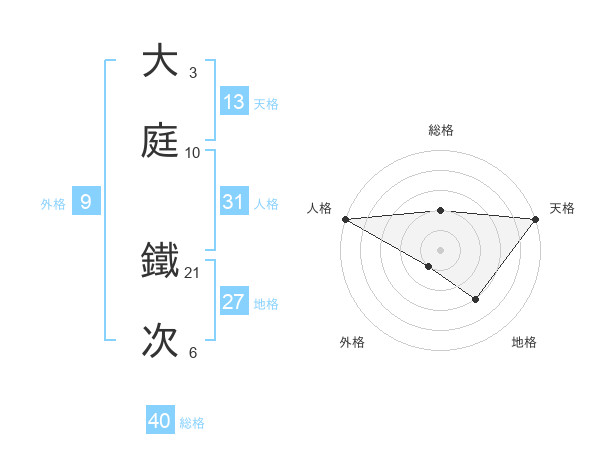 大庭 鐵次さんを姓名の画数から五運を鑑定