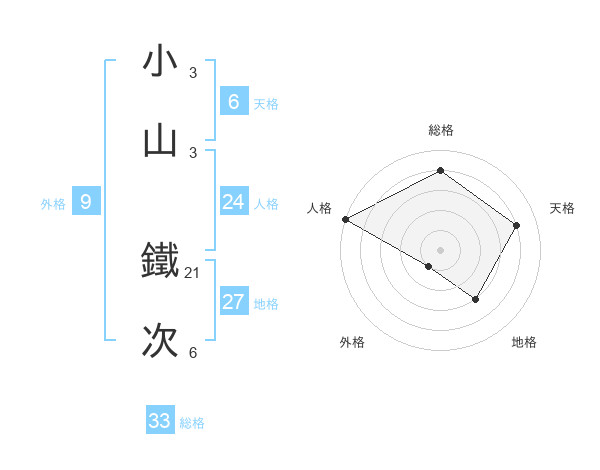 小山 鐵次さんを姓名の画数から五運を鑑定