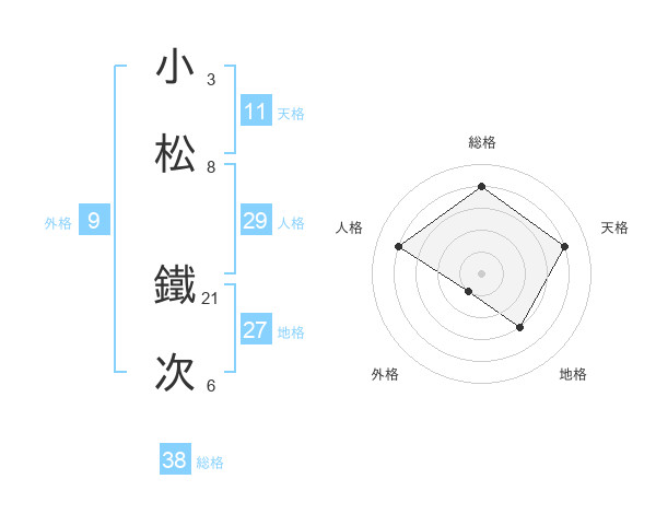小松 鐵次さんを姓名の画数から五運を鑑定
