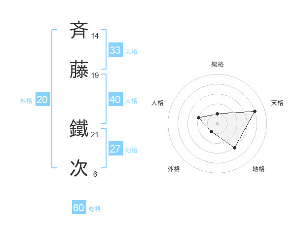 斉藤 鐵次さんを姓名の画数から五運を鑑定