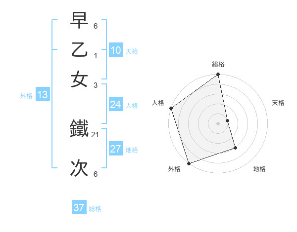 早乙女 鐵次さんを姓名の画数から五運を鑑定