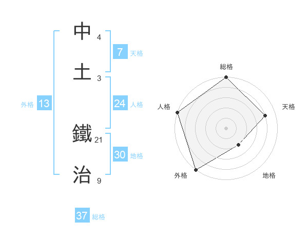 中土 鐵治さんを姓名の画数から五運を鑑定
