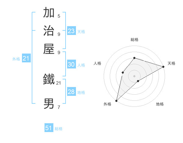 加治屋 鐵男さんを姓名の画数から五運を鑑定
