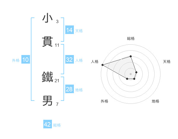 小貫 鐵男さんを姓名の画数から五運を鑑定