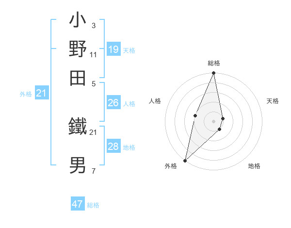 小野田 鐵男さんを姓名の画数から五運を鑑定
