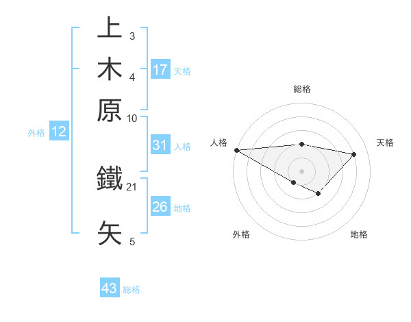 上木原 鐵矢さんを姓名の画数から五運を鑑定