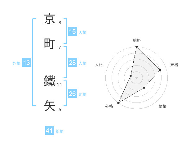 京町 鐵矢さんを姓名の画数から五運を鑑定
