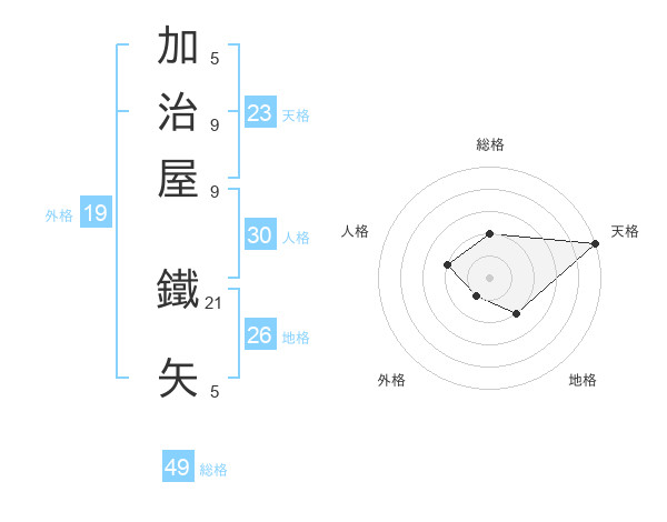 加治屋 鐵矢さんを姓名の画数から五運を鑑定