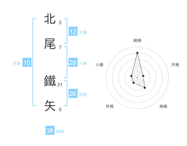 北尾 鐵矢さんの総格は38画の4点!