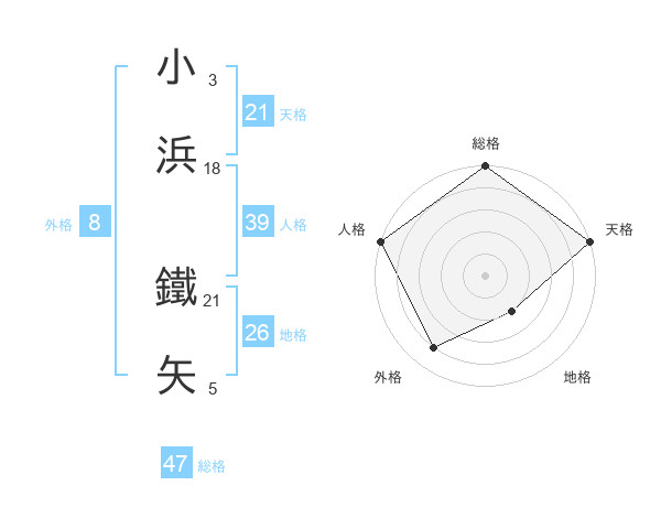 小浜 鐵矢さんの天格は21画の5点!