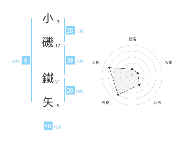 小磯 鐵矢さんを姓名の画数から五運を鑑定