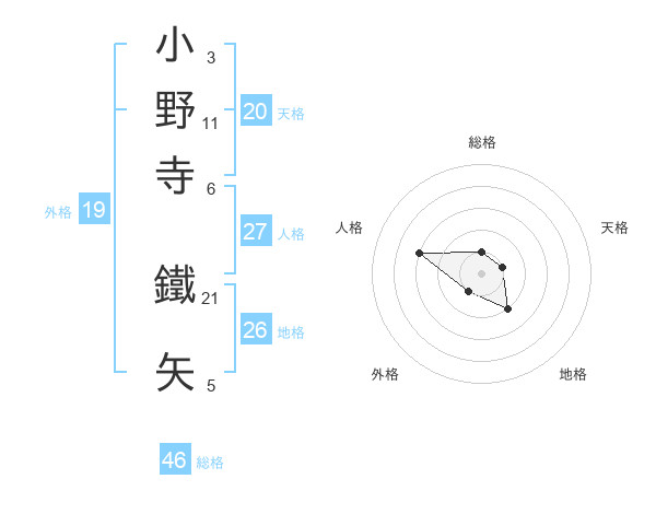 小野寺 鐵矢さんの天格は20画の1点!