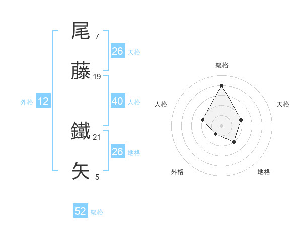 尾藤 鐵矢さんの総格は52画の4点!