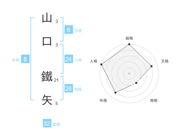 山口 鐵矢さんを姓名の画数から五運を鑑定