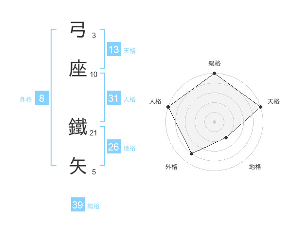 弓座 鐵矢さんを姓名の画数から五運を鑑定