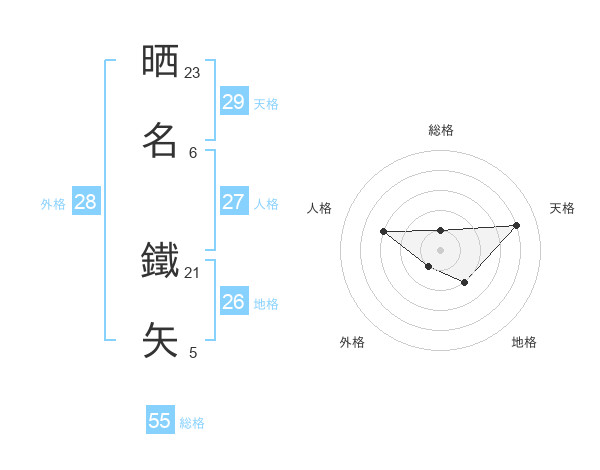 晒名 鐵矢さんを姓名の画数から五運を鑑定