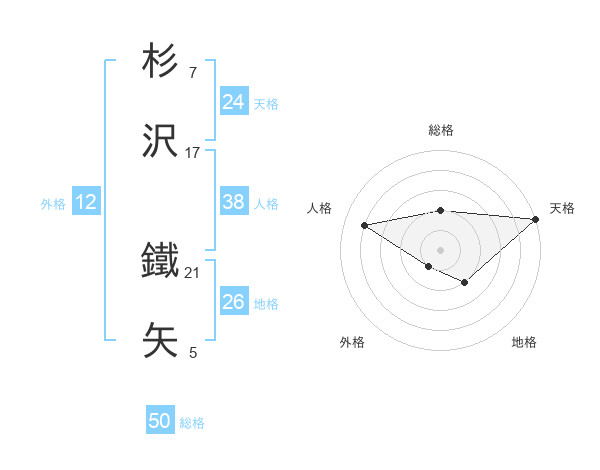 杉沢 鐵矢さんを姓名の画数から五運を鑑定