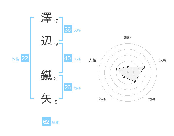 澤辺 鐵矢さんの外格は22画の1点!