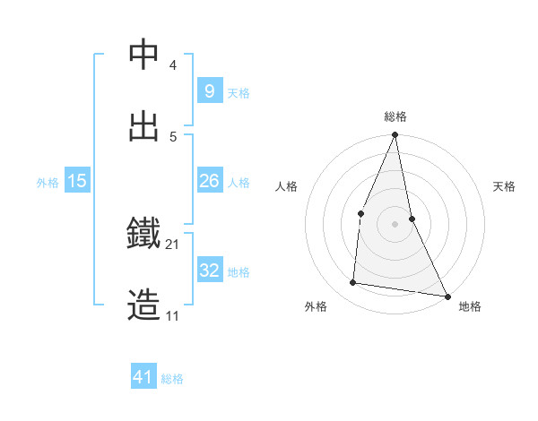 中出 鐵造さんを姓名の画数から五運を鑑定