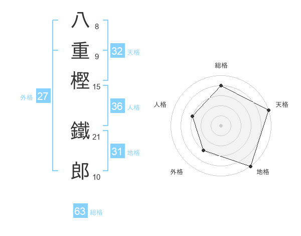 八重樫 鐵郎さんを姓名の画数から五運を鑑定