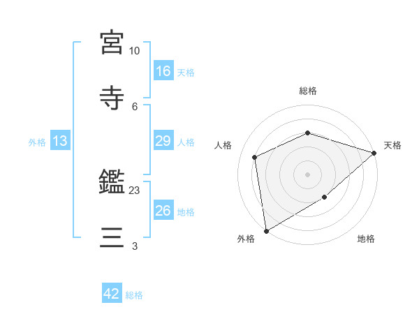 宮寺 鑑三さんを姓名の画数から五運を鑑定