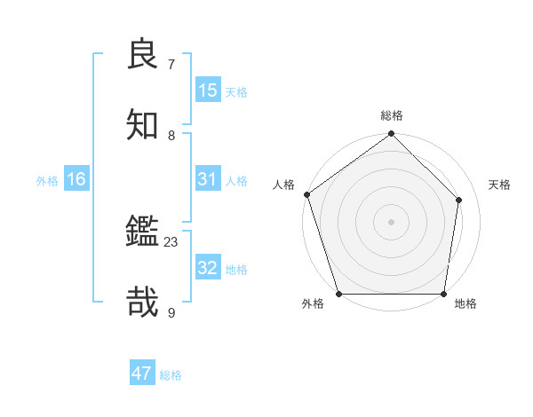 良知 鑑哉さんを姓名の画数から五運を鑑定