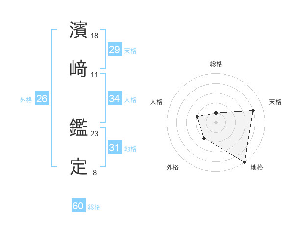 濱﨑 鑑定さんを姓名の画数から五運を鑑定