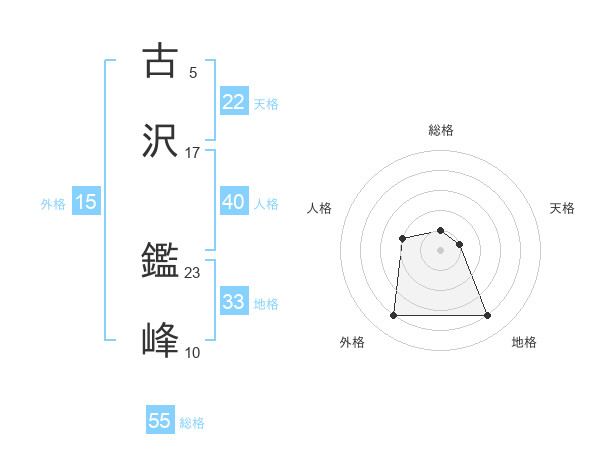 古沢 鑑峰さんを姓名の画数から五運を鑑定