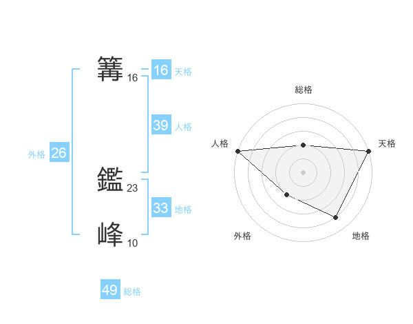篝 鑑峰さんの総格は49画の2点!