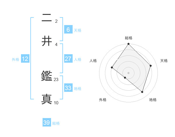 二井 鑑真さんの総格は39画の5点!