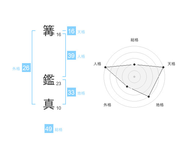 篝 鑑真さんの総格は49画の2点!