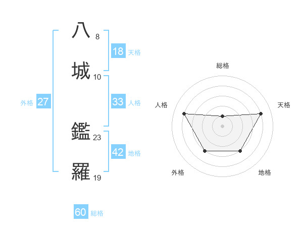 八城 鑑羅さんの総格は60画の1点!