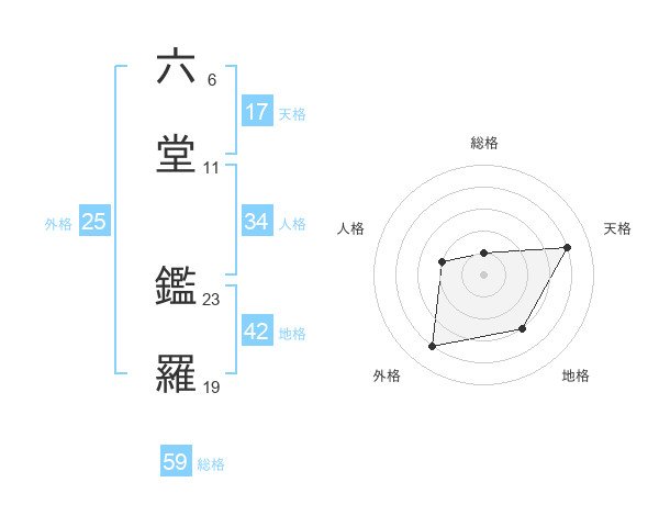 六堂 鑑羅さんを姓名の画数から五運を鑑定
