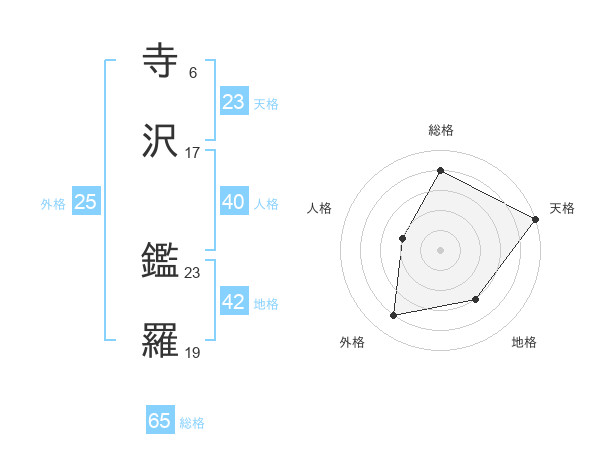 寺沢 鑑羅さんの総格は65画の4点!