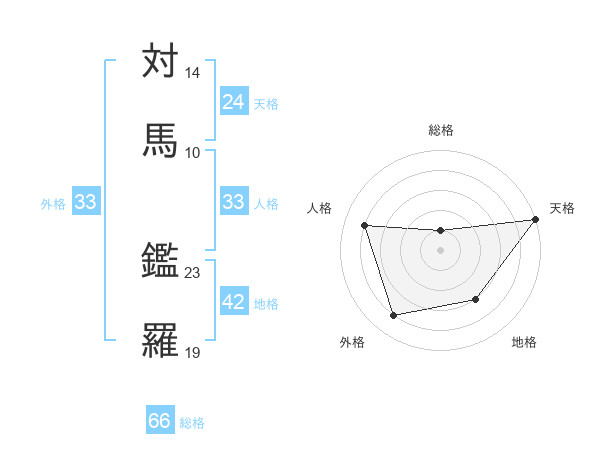 対馬 鑑羅さんを姓名の画数から五運を鑑定