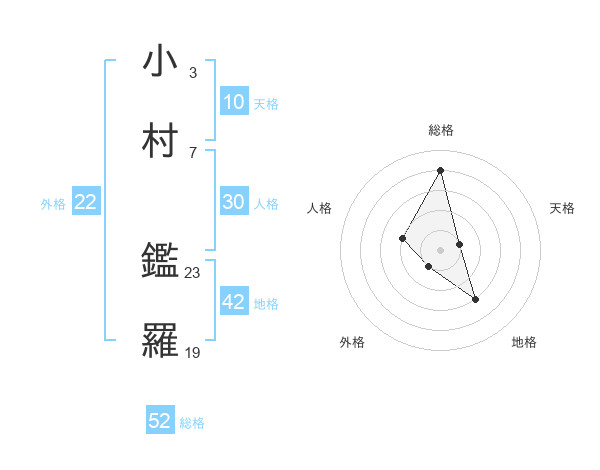 小村 鑑羅さんの総格は52画の4点!