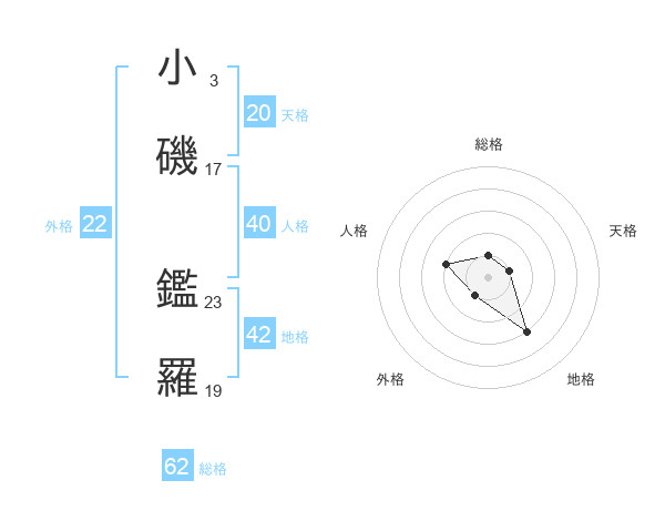 小磯 鑑羅さんの外格は22画の1点!