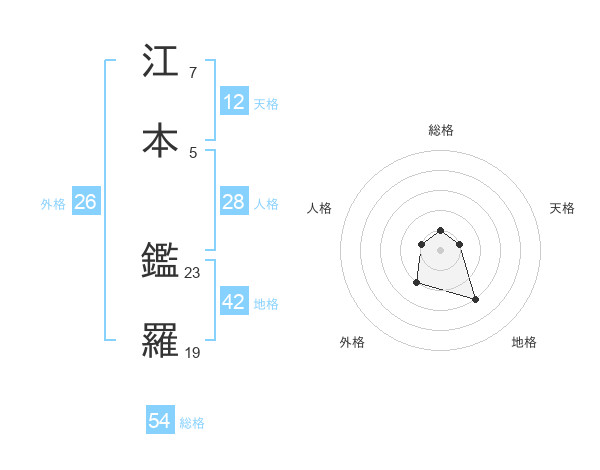 江本 鑑羅さんを姓名の画数から五運を鑑定