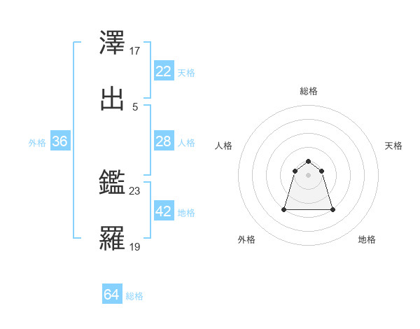 澤出 鑑羅さんの天格は22画の1点!