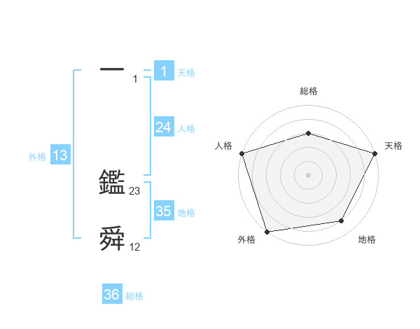 一 鑑舜さんの総格は36画の3点!