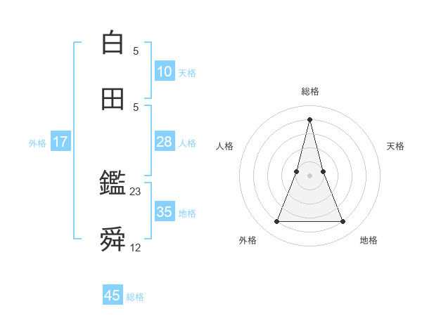白田 鑑舜さんの総格は45画の4点