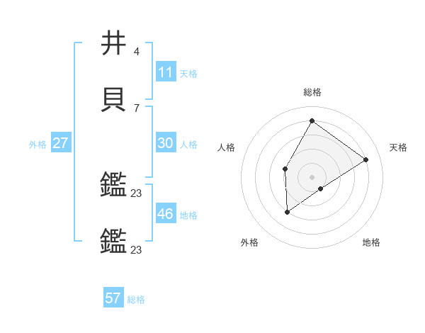 井貝 鑑鑑さんの総格は57画の4点!