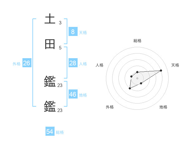 土田 鑑鑑さんを姓名の画数から五運を鑑定