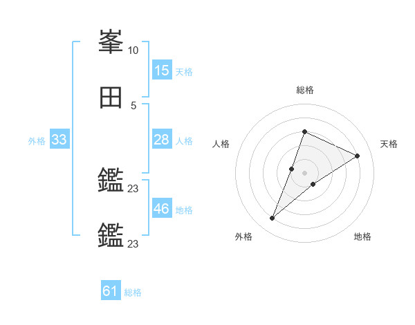 峯田 鑑鑑さんの総格は61画の3点!