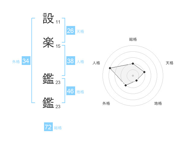 設楽 鑑鑑さんの総格は72画の2点