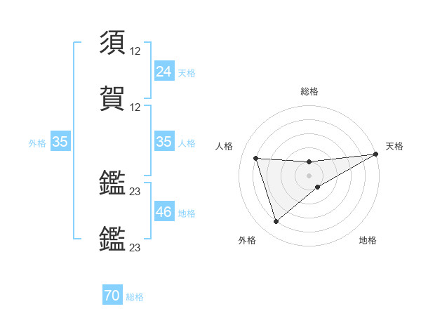 須賀 鑑鑑さんを姓名の画数から五運を鑑定