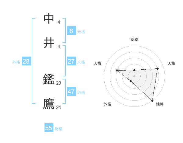 中井 鑑鷹さんを姓名の画数から五運を鑑定