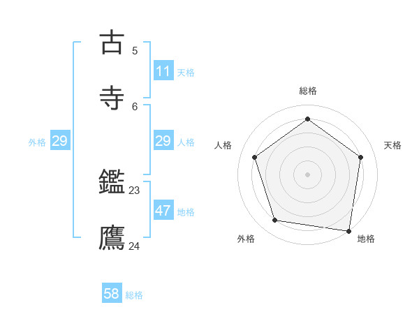 古寺 鑑鷹さんの総格は58画の4点!